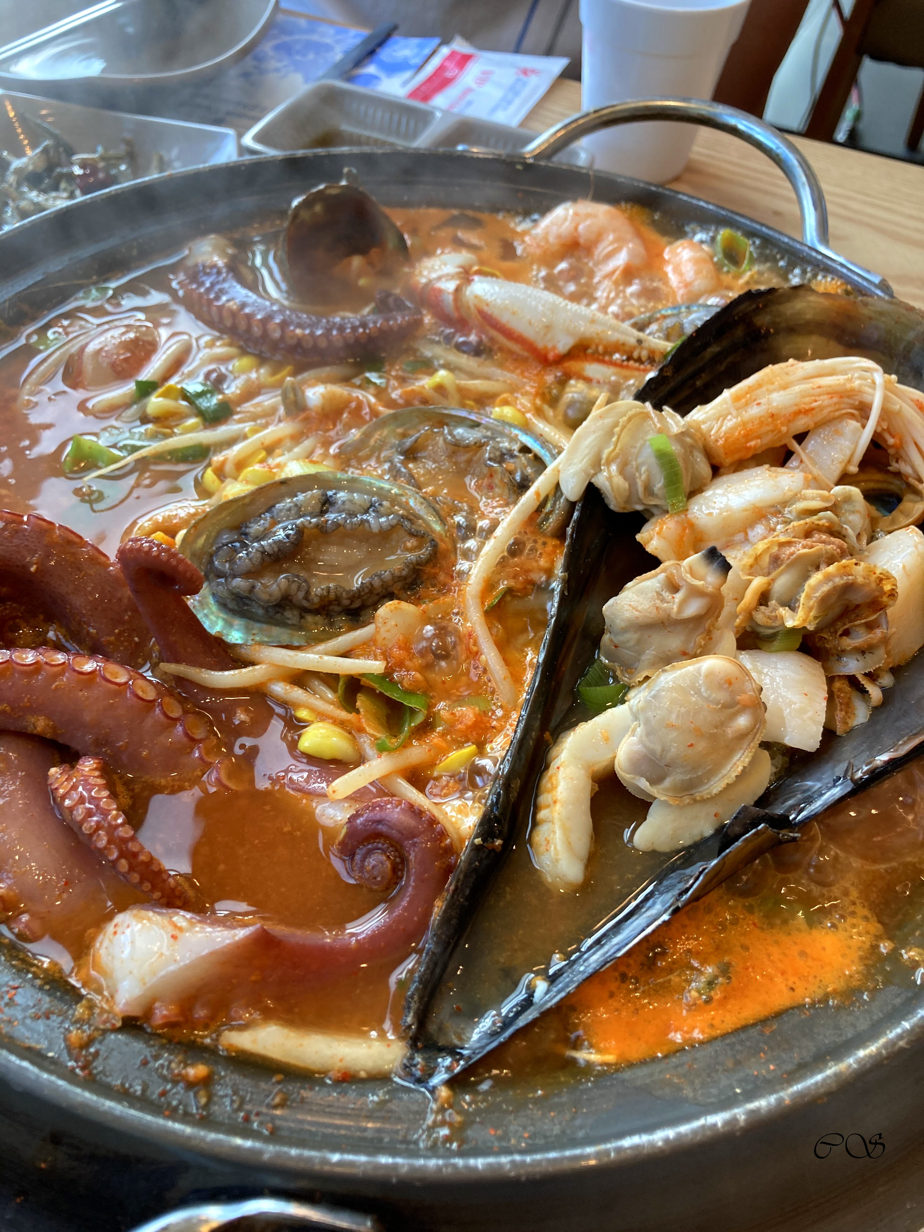 1) 해물탕에는 문어, 조개, 새우, 소라 등 다양한 해산물이 들어가 있고 상태가 좋았습니다. 그리고 국물이 굉장히 좋아서 마지막에 라면도 넣고 먹었습니다. 개꿀맛 라면.