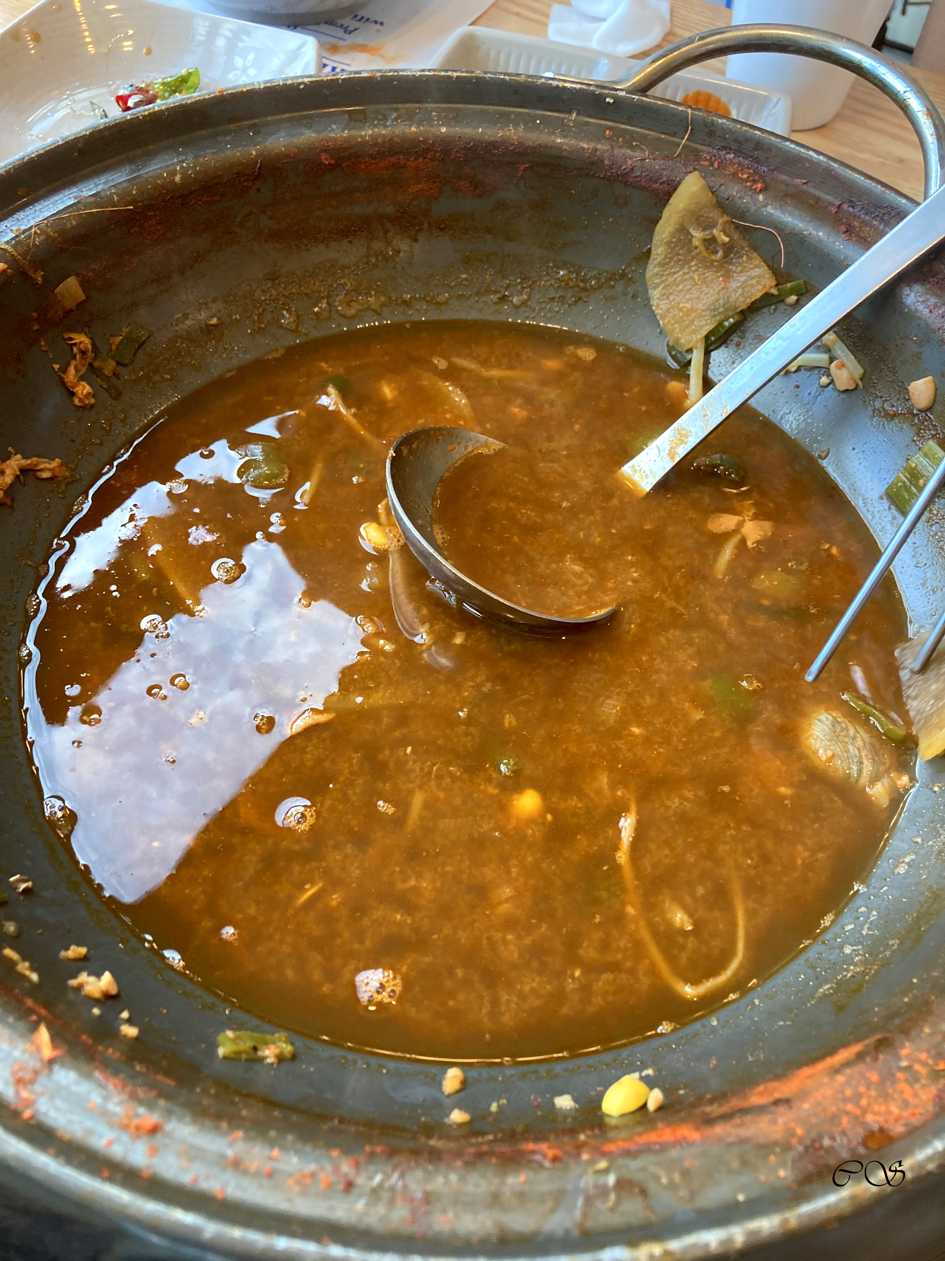 해물탕 클리어했습니다. 마지막에 라면까지 넣어서 먹었습니다. 밥만 먹으려 했는데 라면을 안 넣을 수가 없었습니다. 해물탕에 들어간 해산물 상태도 좋고 괜찮았습니다. 고기만 먹다가 지겨울 때 한 번 가면 좋을 듯합니다.
