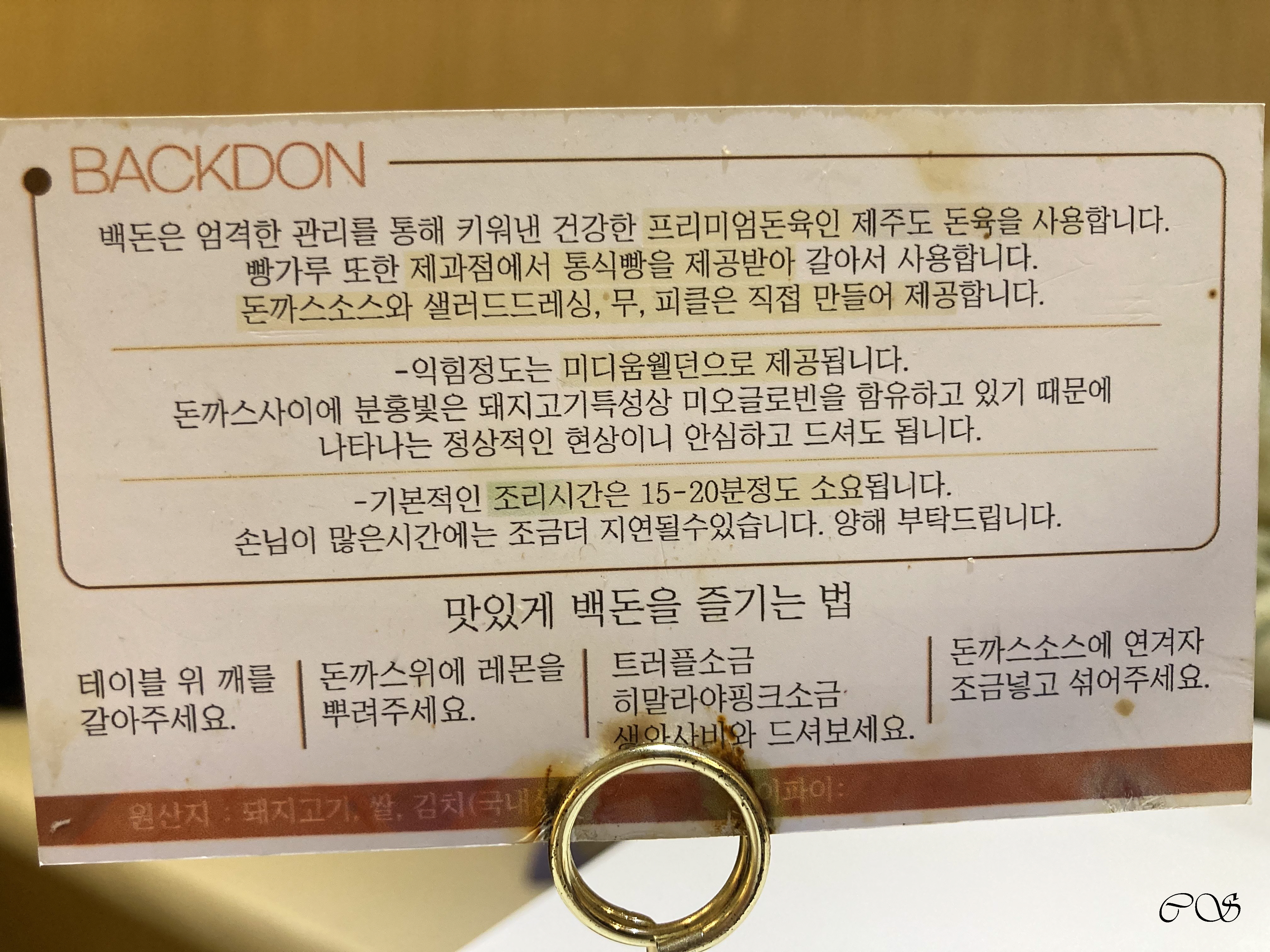 백돈 돈가스 설명입니다. 참고하시기 바랍니다.