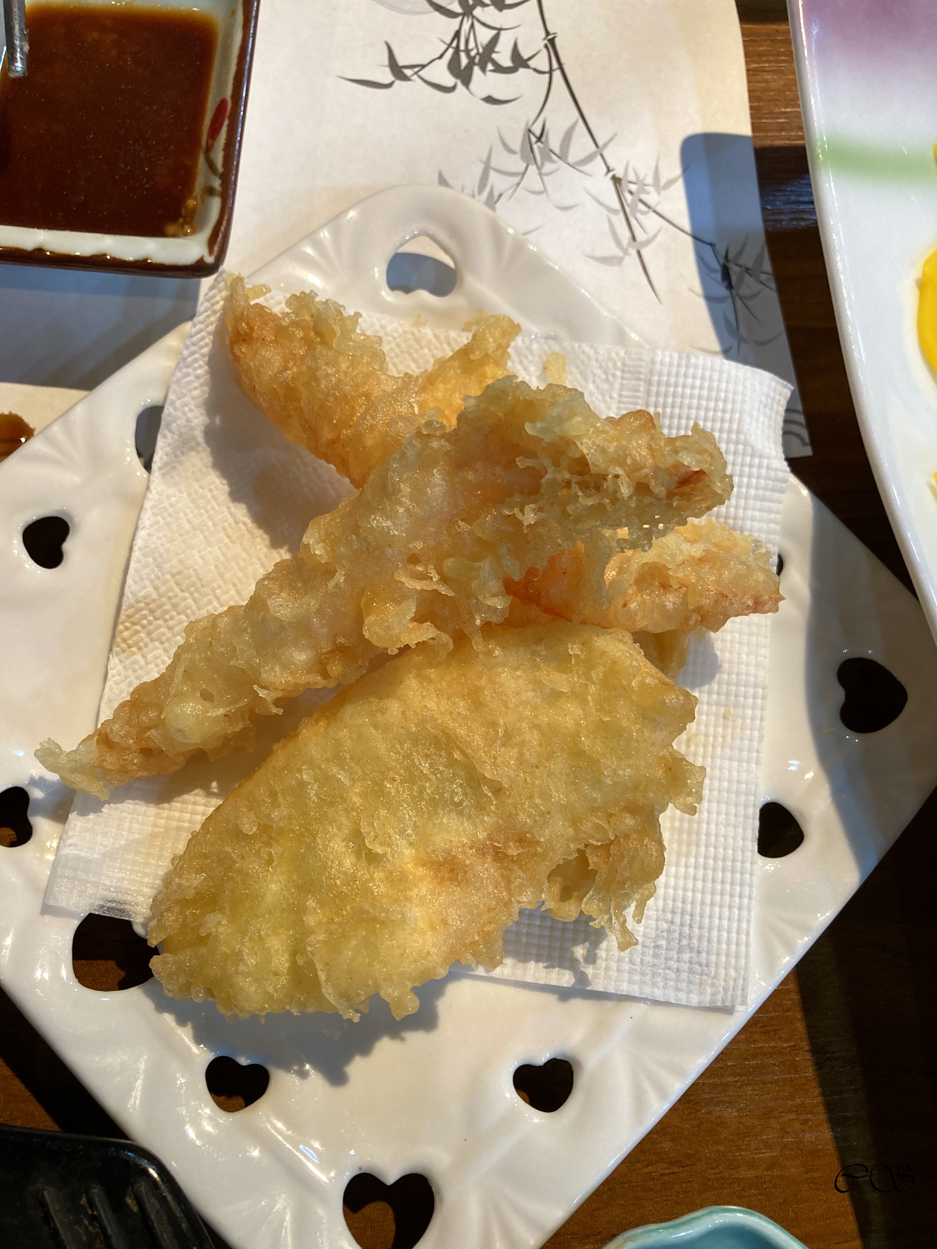 새우 튀김하고 고구마튀김 나왔습니다.