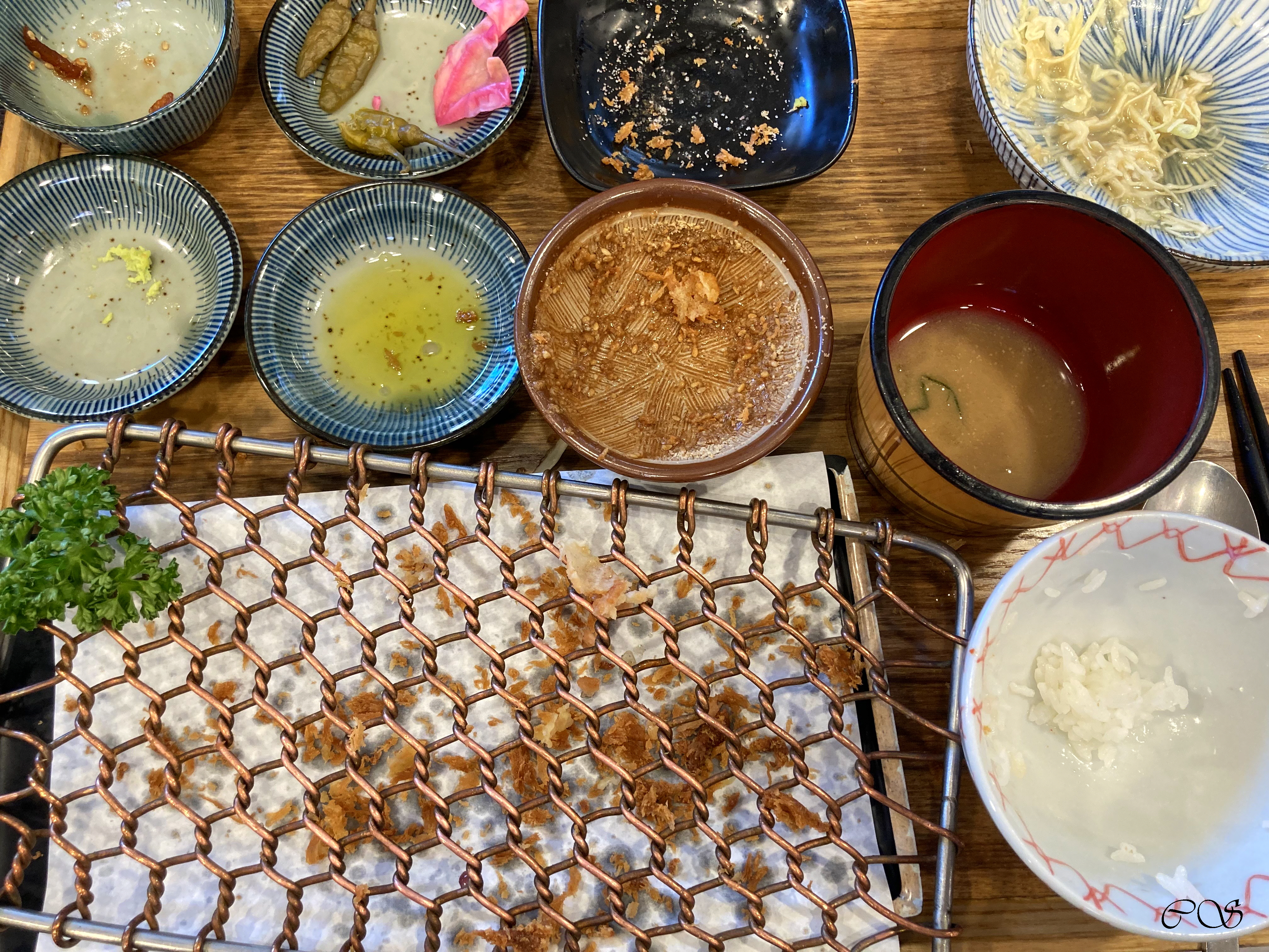 소금, 트러플, 고추냉이, 양배추, 밥 등이 함께 나왔습니다. 히레까스 색깔이 참 좋네요~