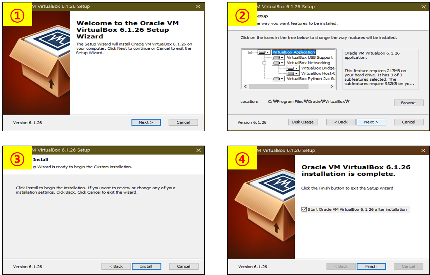 2) "Dowonload VirtualBox 6.1"과 "6.1.26. Oracle VM VirtualBox"함께 설치