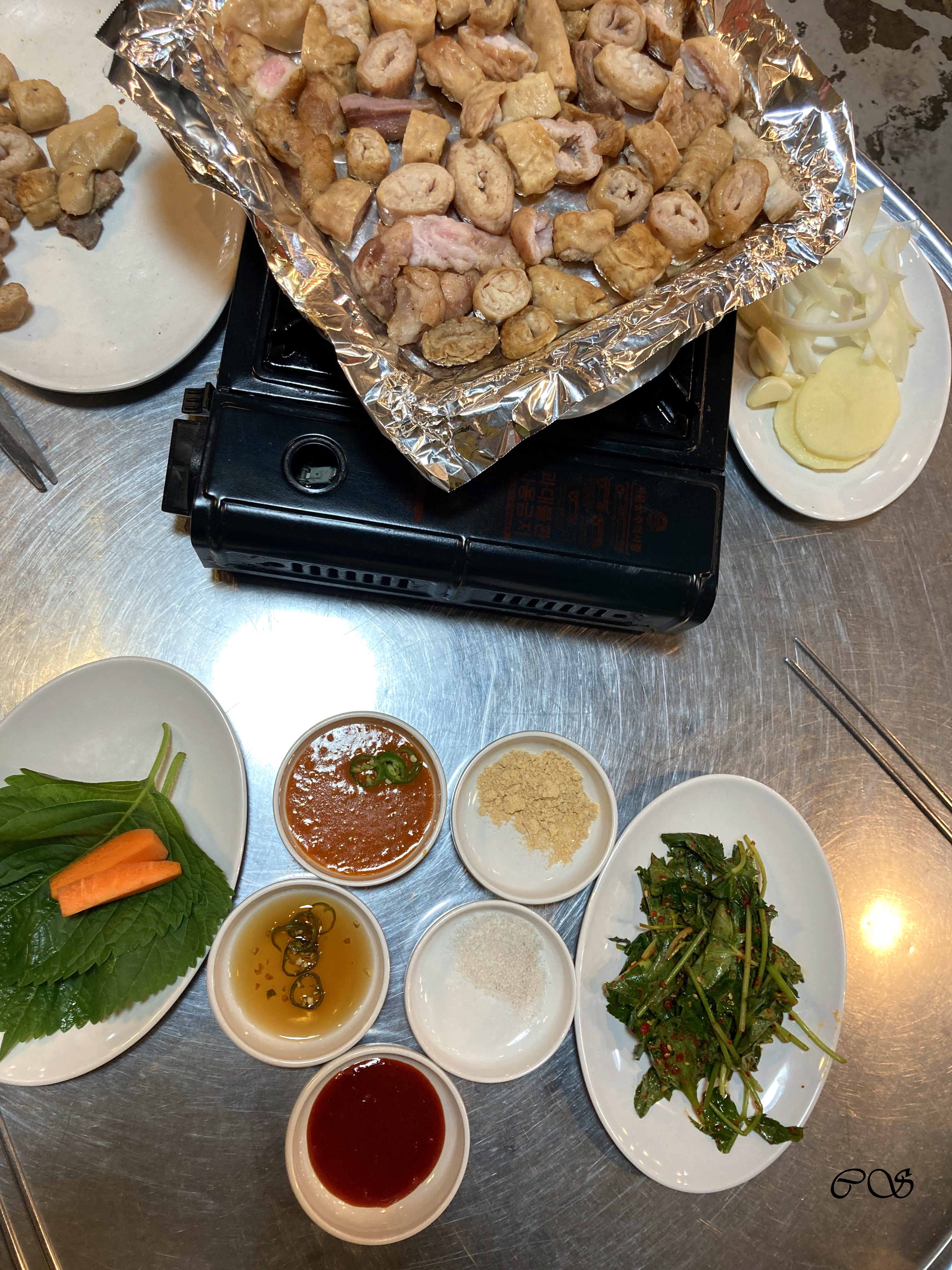 1) 소금구이는 양도 많고 냄새도 안 나고 먹기 좋았습니다. 다양하게 소스도 찍어서 먹을 수 있어서 괜찮았습니다.