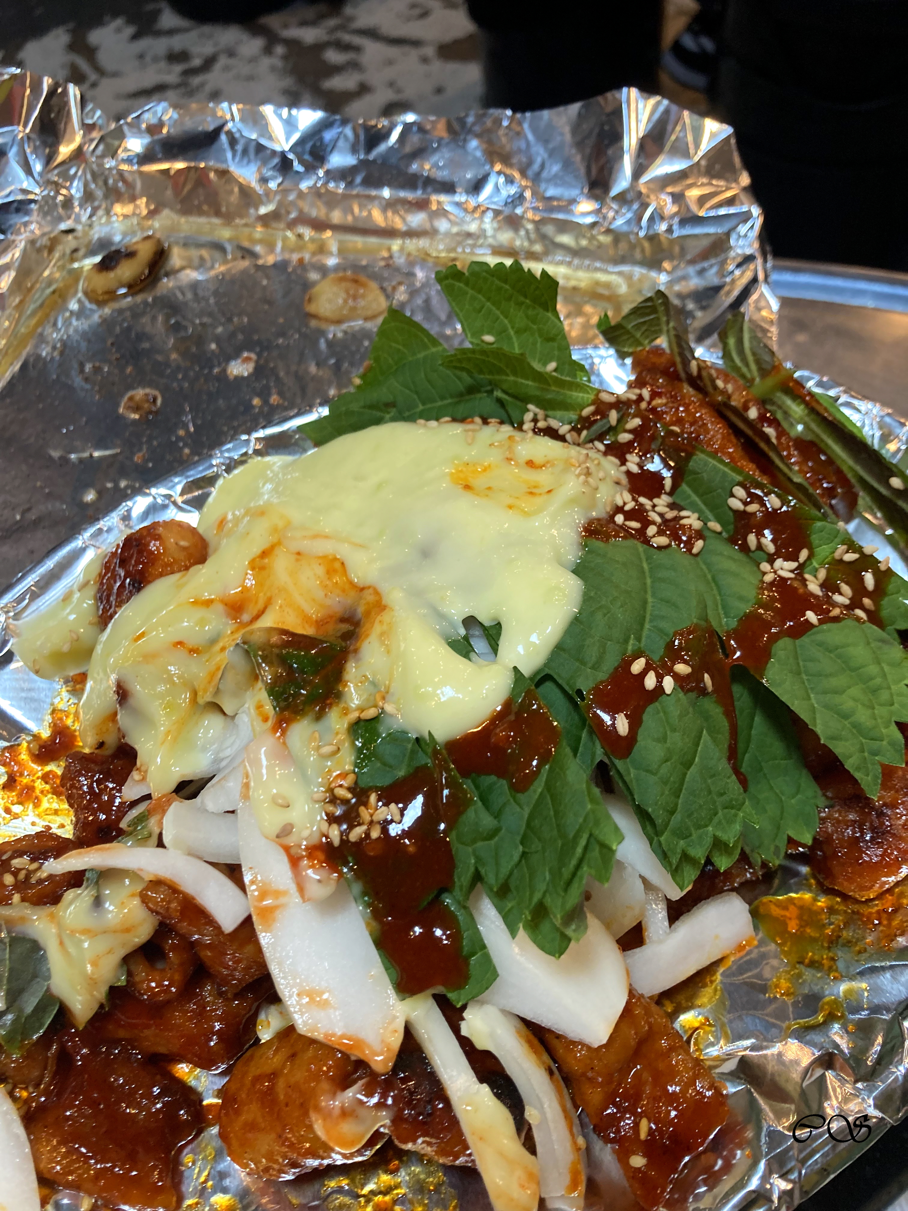 양념구이 위에 올라간 거는 치즈인 줄 알았는데 치즈는 아니고 달콤한 소스입니다. 약간 매운 양념구이랑 먹기 괜찮은 소스입니다.