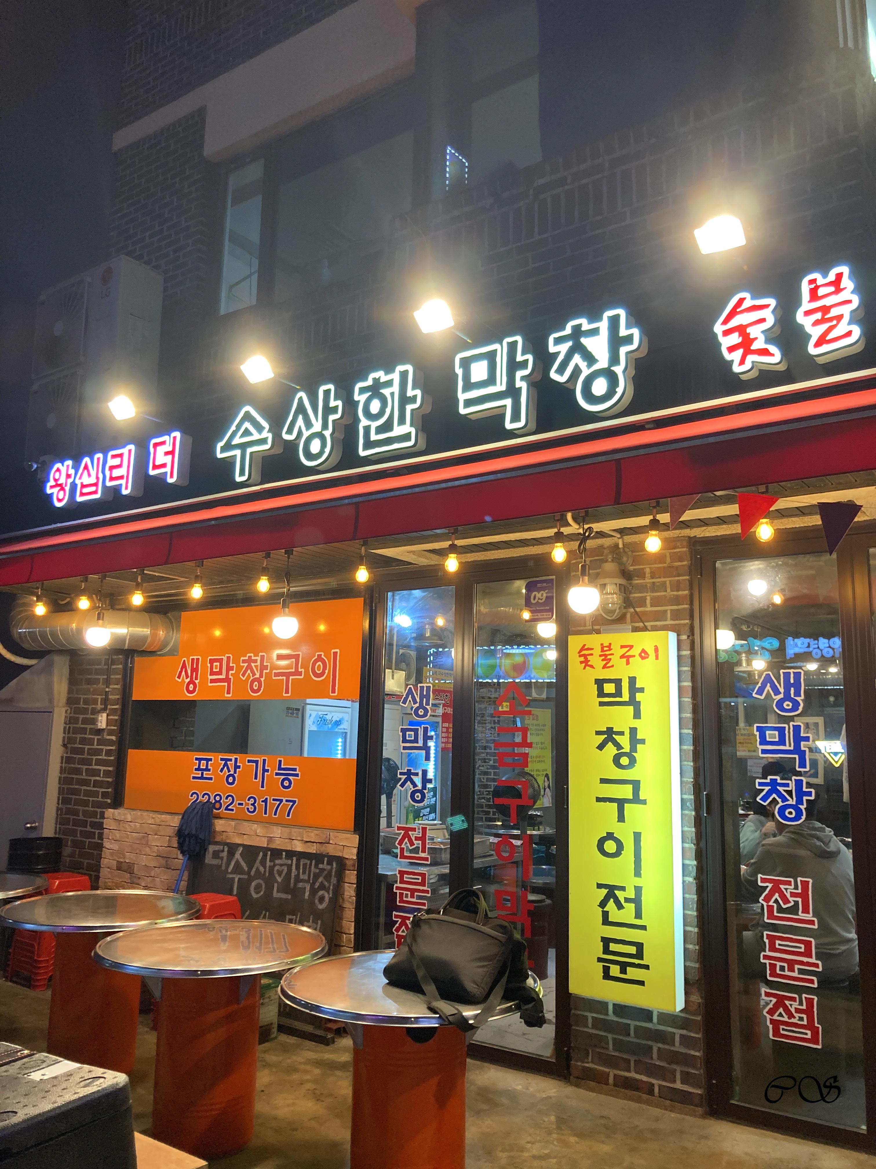 뭐 먹을지 고민하다가 많은 검색을 통해 수상한 막창이라는 식당을 찾았습니다. 막창을 먹은지 오래됐고 해서 막창을 먹으러 갔습니다. 6시쯤 식당에 도착했는데 손님들은 많이 없었지만, 8시쯤 되니 꽉 차 있었습니다. 꽤 인기가 있는 식당인 듯합니다. 저희는 소금구이(14,000원)와 양념구이(14,000원) 모두 주문해서 먹었습니다. 술들을 잘 먹는 사람들이라 오랜만에 술을 많이 먹게 되었습니다. 막창과 소주 좋은 조합이었습니다.