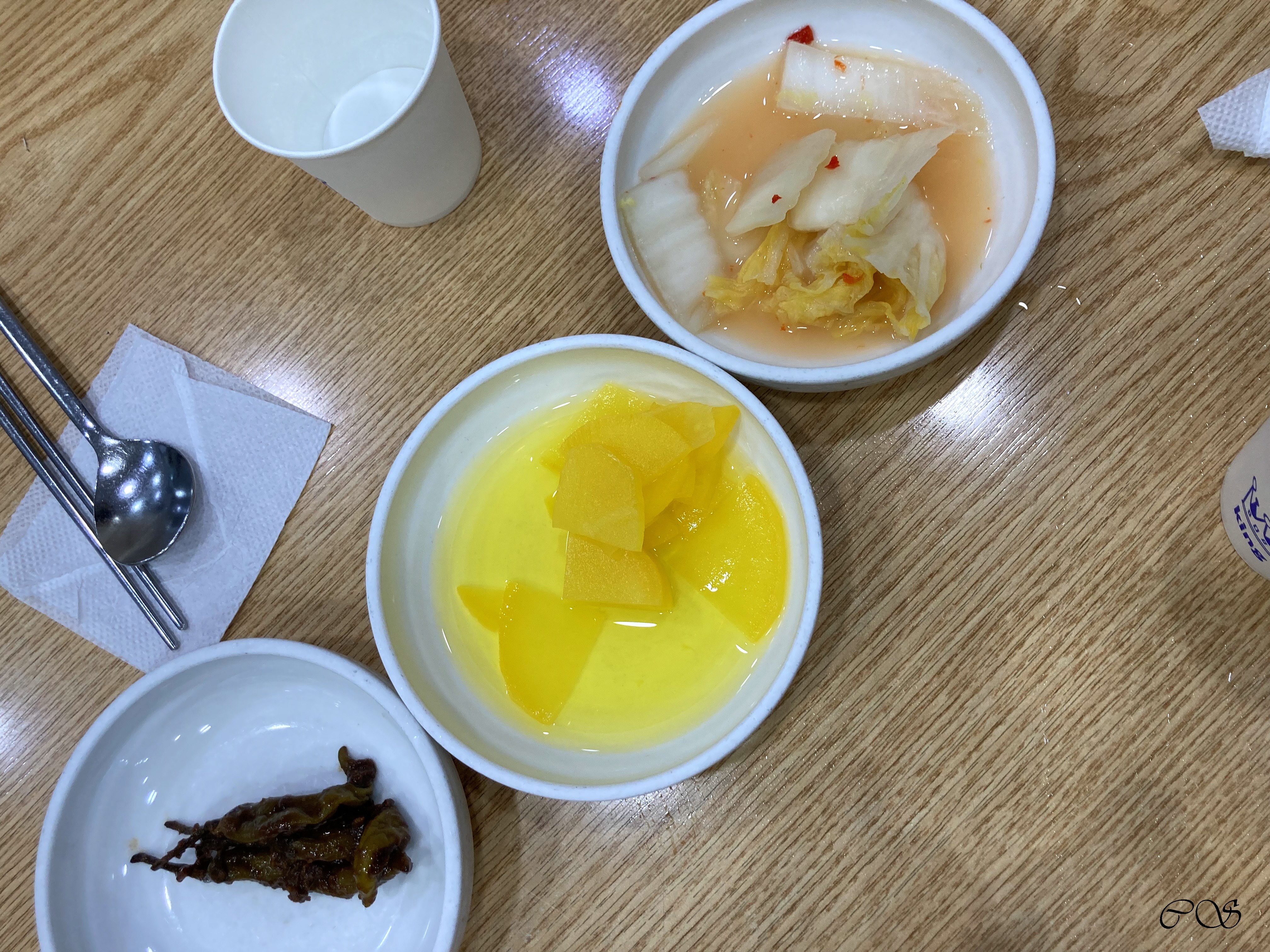 밑반찬은 3가지가 나옵니다. 고추장아찌, 백김치와 단무지가 나옵니다.