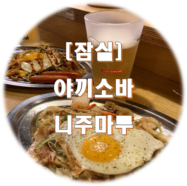 여자 친구 시험 이후 저녁으로 잠실에서 있는 야끼소바 니주마루에서 야끼소바를 먹기로 했습니다. 이 식당은 생활의 달인에 출연했고 잠실 갈 때 식당을 보면 항상 줄이 길이서 갈 생각을 안 했는데 이번엔 기다렸고 먹었습니다. 처음 방문했기 때문에 추천 메뉴를 먹었습니다. 소스+ 오징어/새우, 소스+치즈/비엔나를 먹었습니다. 식당이 협소하기도 했고 대기 사람들도 많아서 약 1시간 정도 기다렸던 거 같습니다.