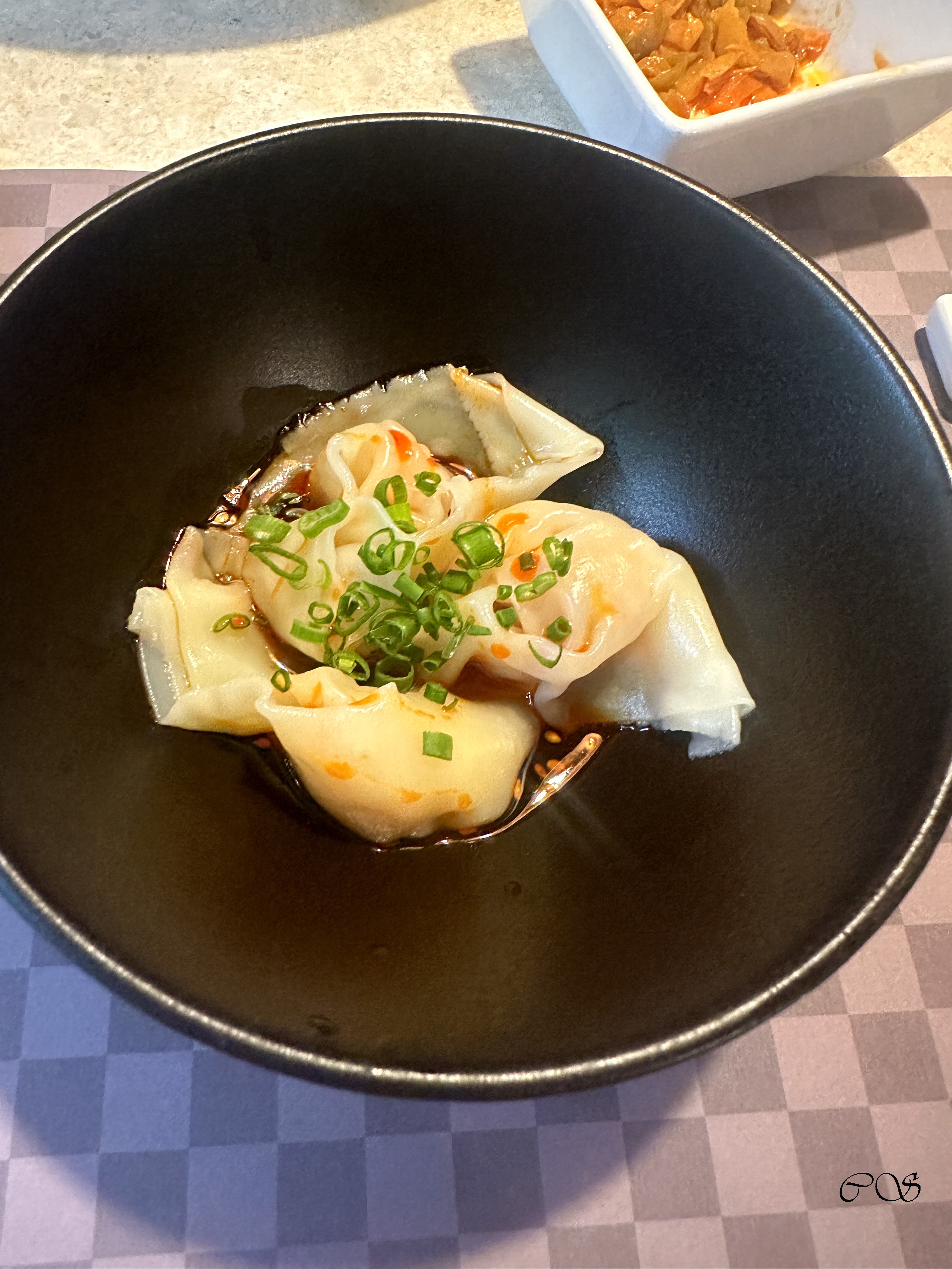 식사로 만두와 국수를 주문했습니다. 우선 만두는 3개가 나왔고 맛있었습니다.