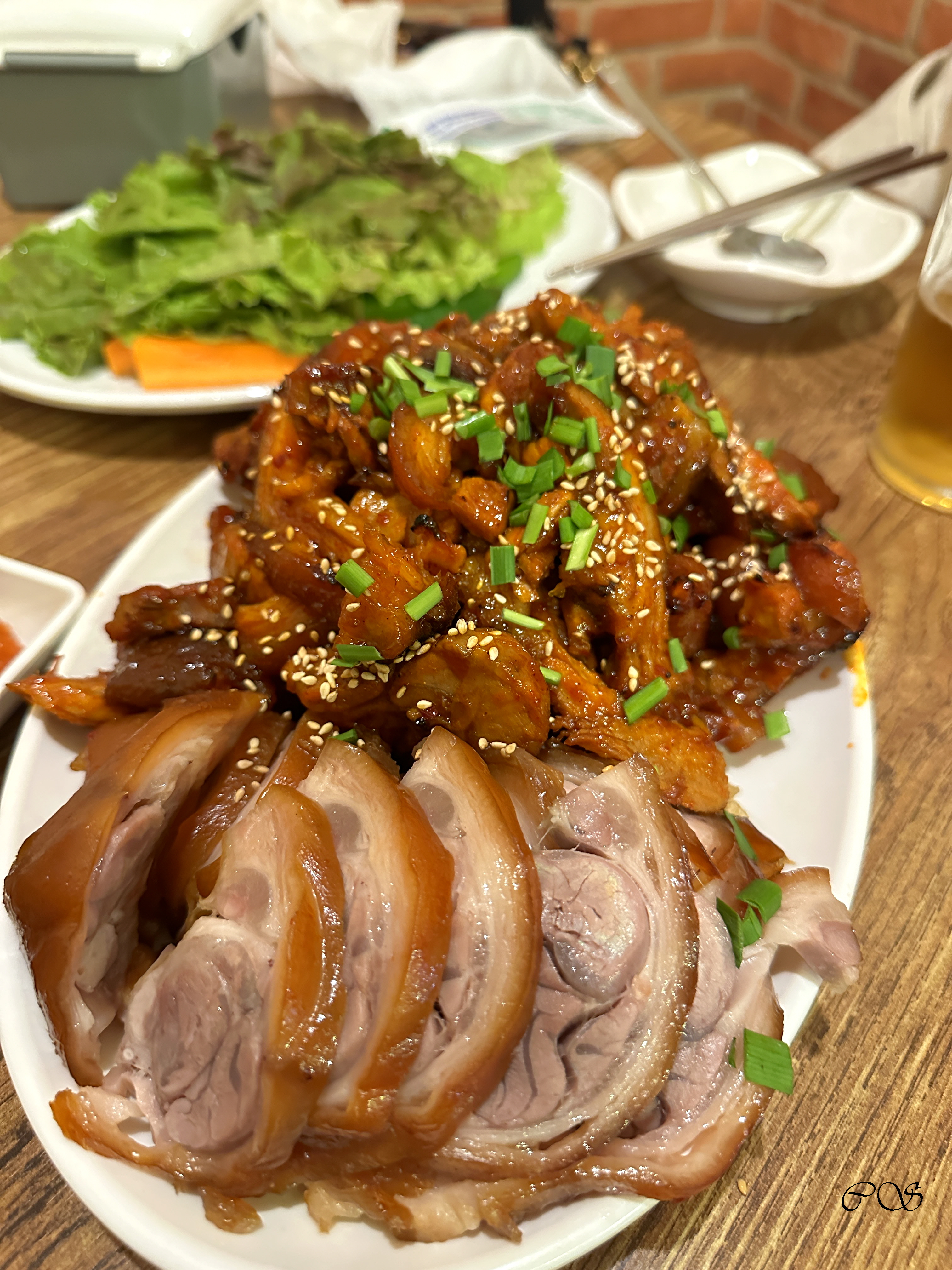 매운 족발은 숯불향 나고 괜찮았습니다. 맛있게 매운맛입니다.