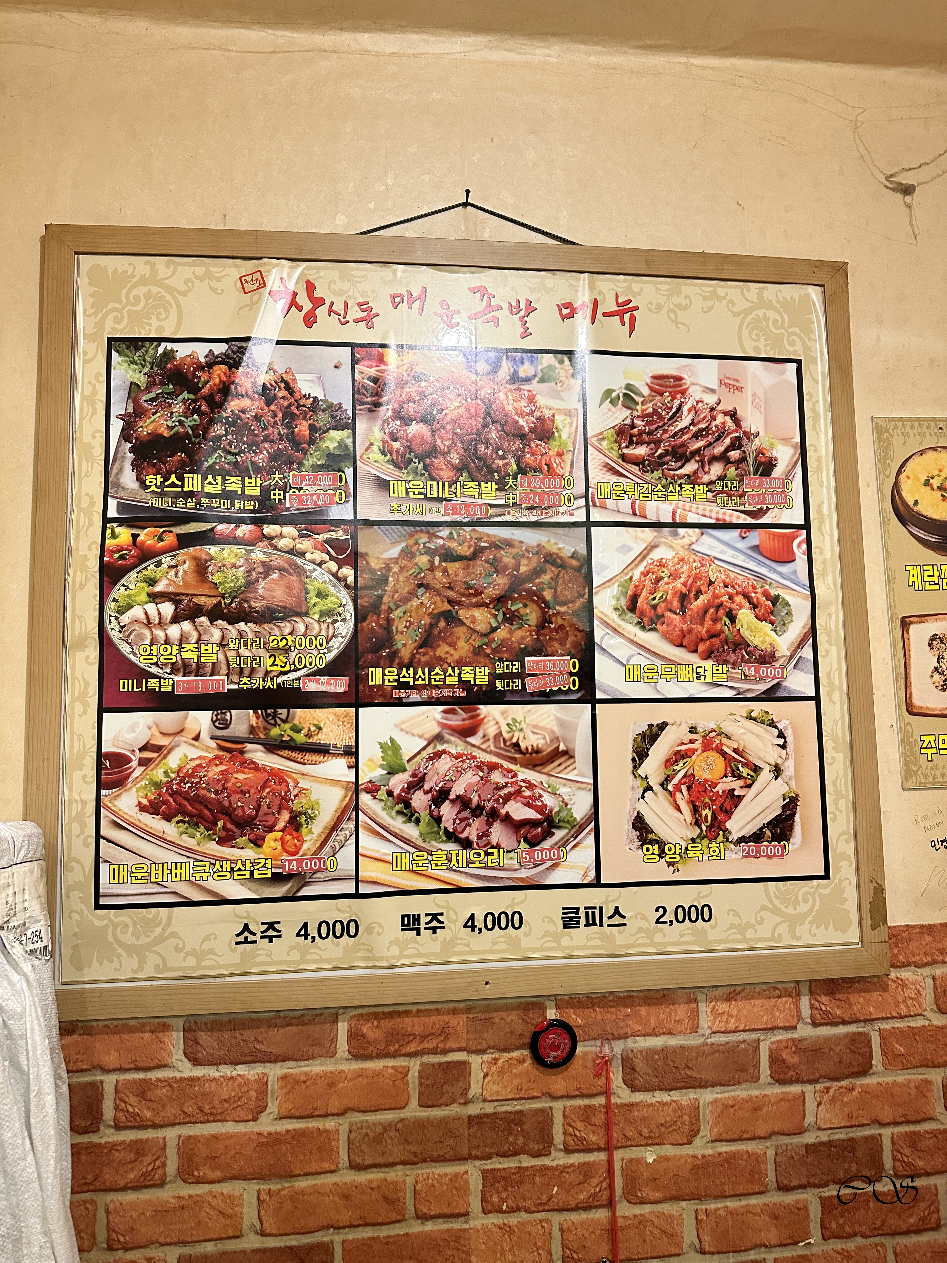 메뉴판입니다. 족발 외에도 닭발, 바베큐삼겹살, 육회 등을 팝니다.