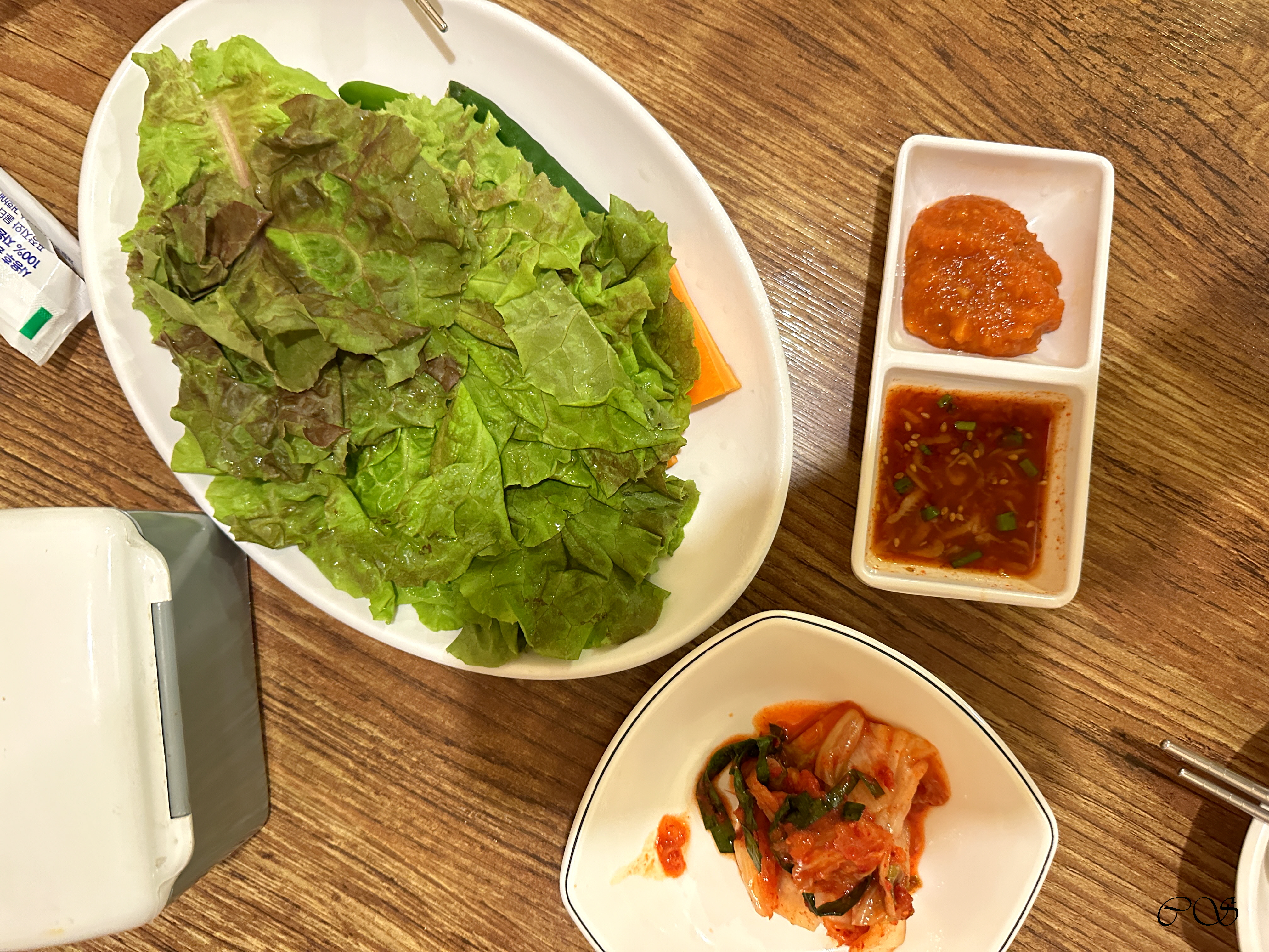 밑반찬은 위와 같습니다. 상추, 김치, 새우젓, 쌈장이 나옵니다.