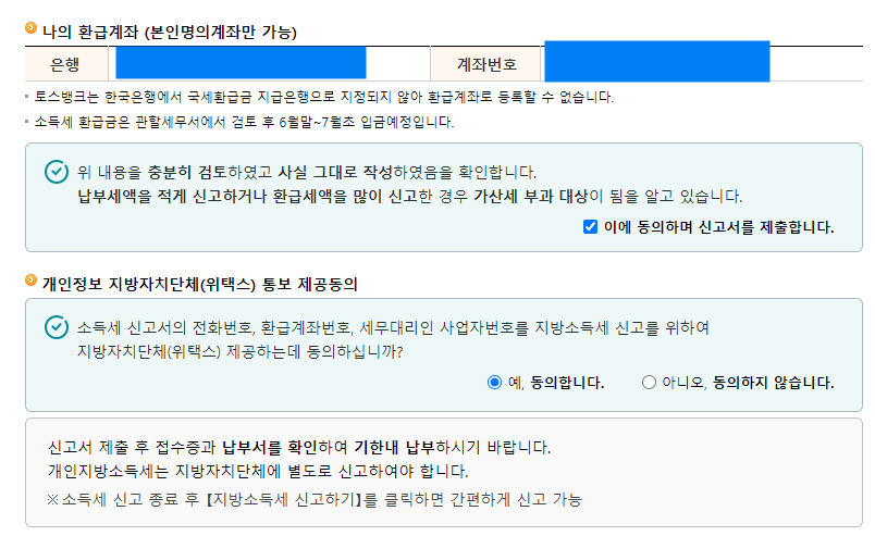 4. 환급계좌 입력 및 신고서 제출하기