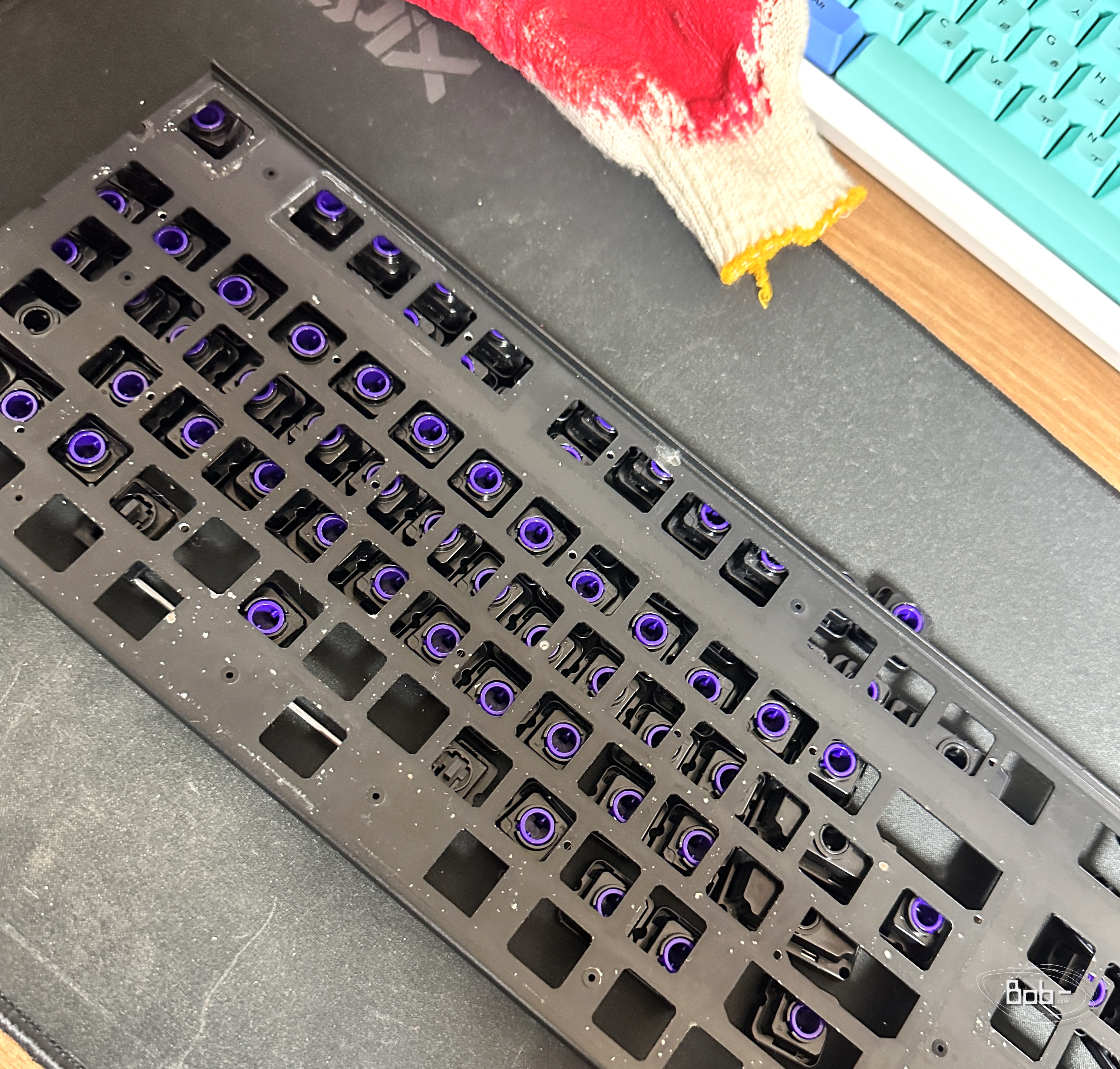 과한 윤활은 러버덤이나 키캡에 손상을 줄 수 있다고 해서 정말 조금씩 발랐습니다. 유튜브 등을 참고해서 정말 소량만 발라서 사용하시기 바랍니다.