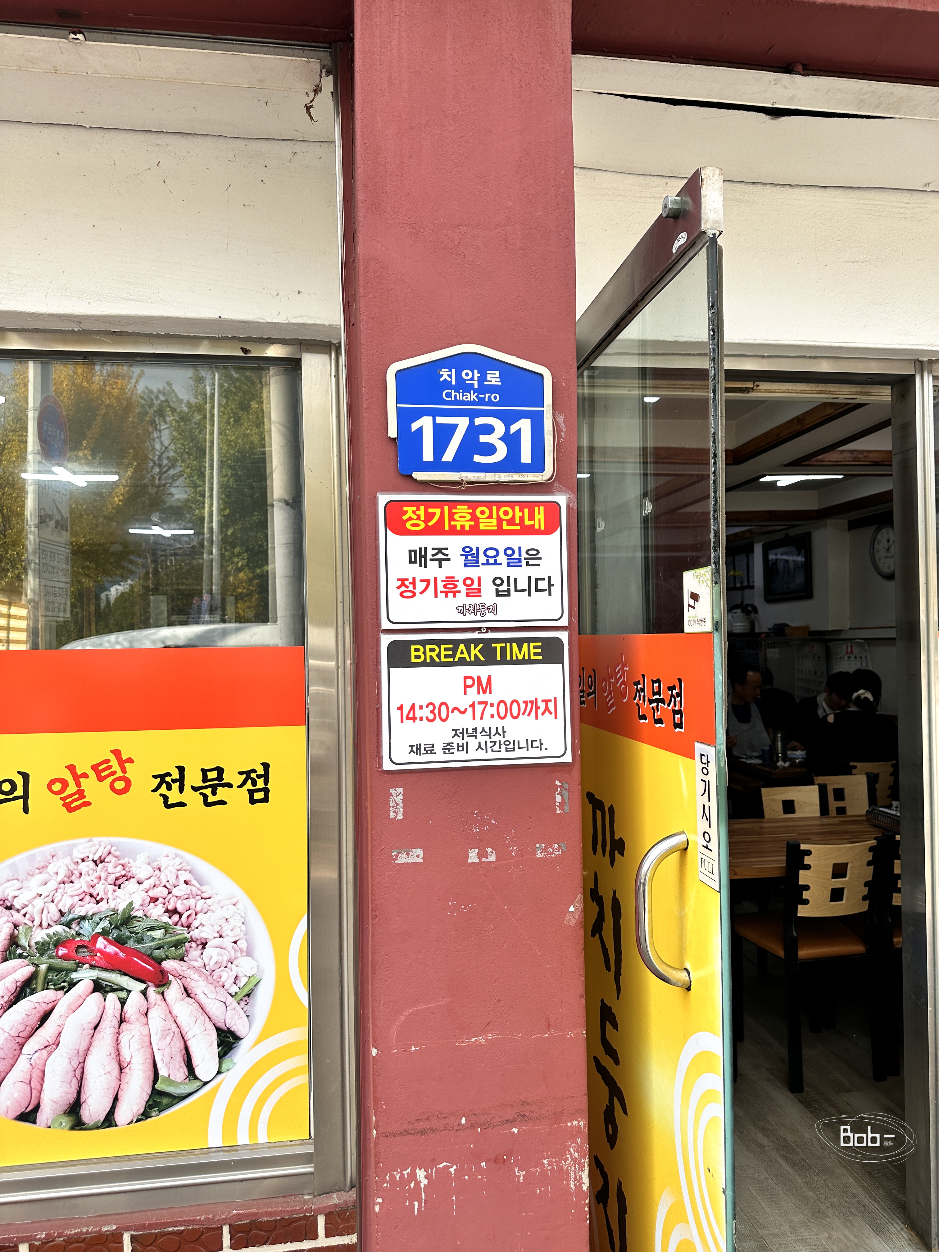 월요일은 정기휴일이고, 14:30 ~ 17:00은 브레이크 시간입니다.
