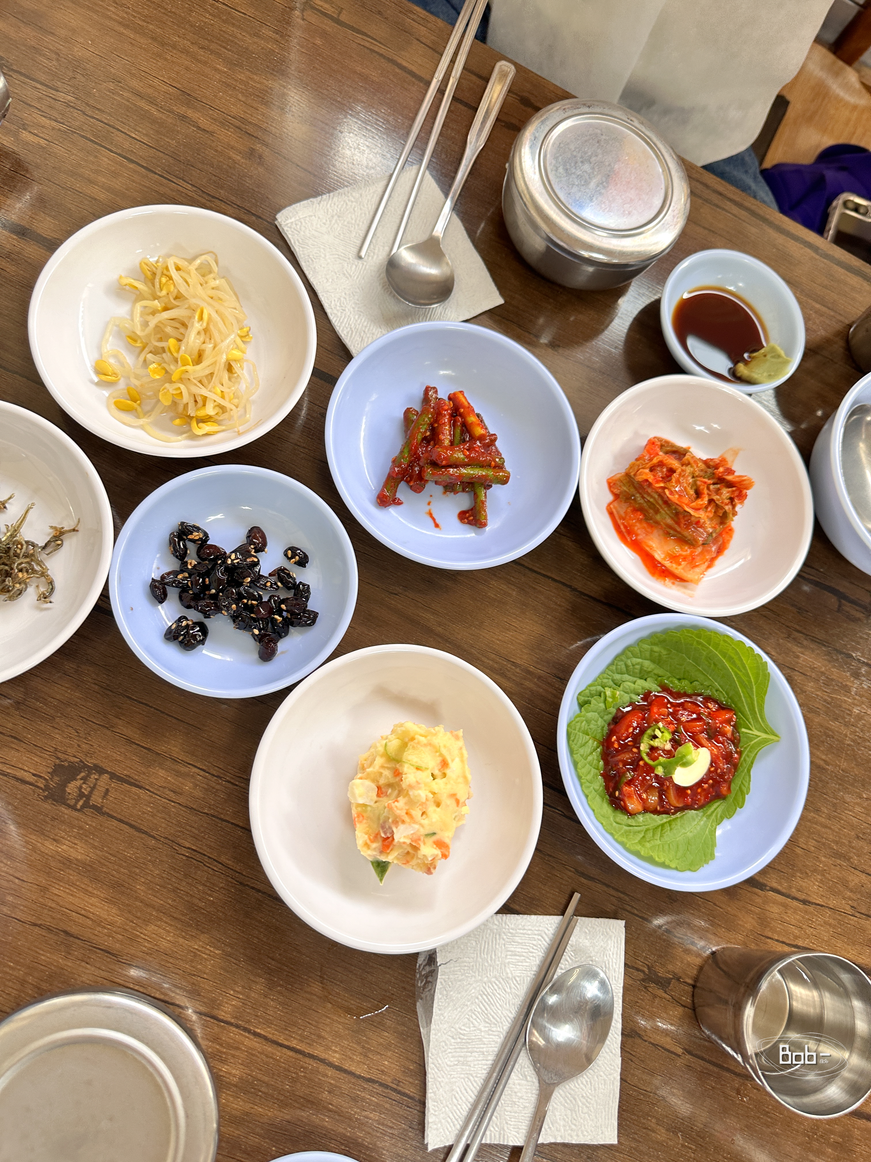 밑반찬입니다. 밑반찬 수는 7개가 나옵니다. 콩나물은 짠편이었습니다.