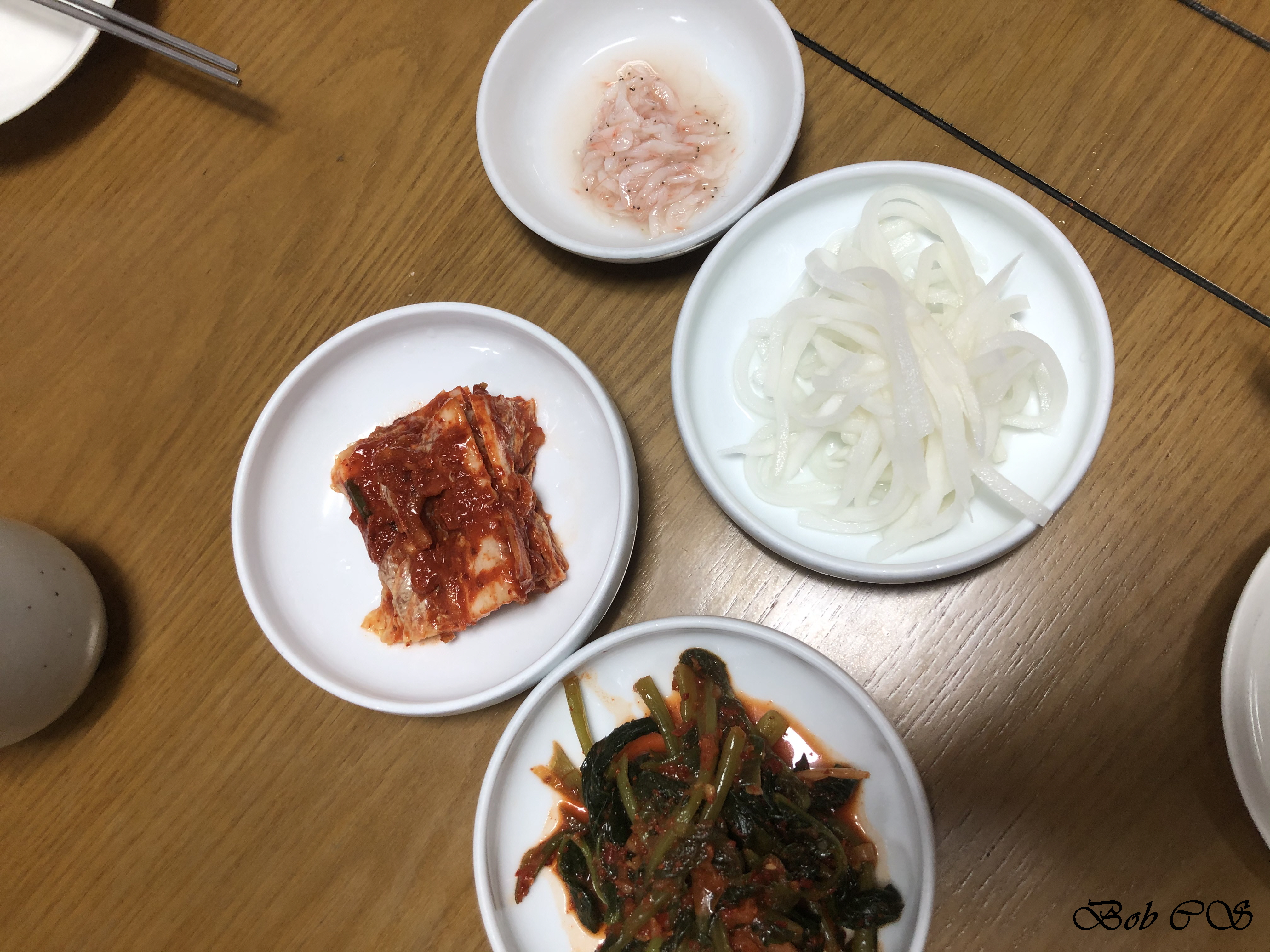 밑반찬은 김치, 열무김치, 무생채가 나옵니다. 보통 식당에서는 무생채 하나만 나오지만, 여러 개가 나와서 골라먹기 좋았습니다. 수육을 시켰기 때문에 멸치젓도 함께 나왔습니다.