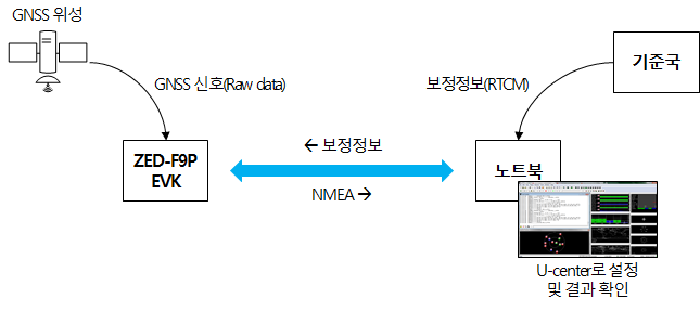 ZED-F9P와 노트북(U-center)와 약 3~5m정도 떨어져서 시험을 해봤는데 제대로 동작하는 것을 확인 하였습니다.