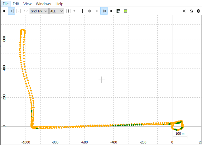 우선 RTKLIB를 통해 저장한 pos 파일을 RTKPLOT로 실행하였고, 아래 그림 같이 나옵니다.